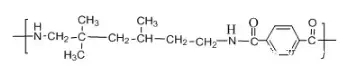英文名:polytrimethyl hexamethylene terephthalamide;transparent polyamide resin;透明尼龍是無定形聚酰胺,化學名稱為:聚對苯二甲酰三甲基己二胺。其分子結構式為: